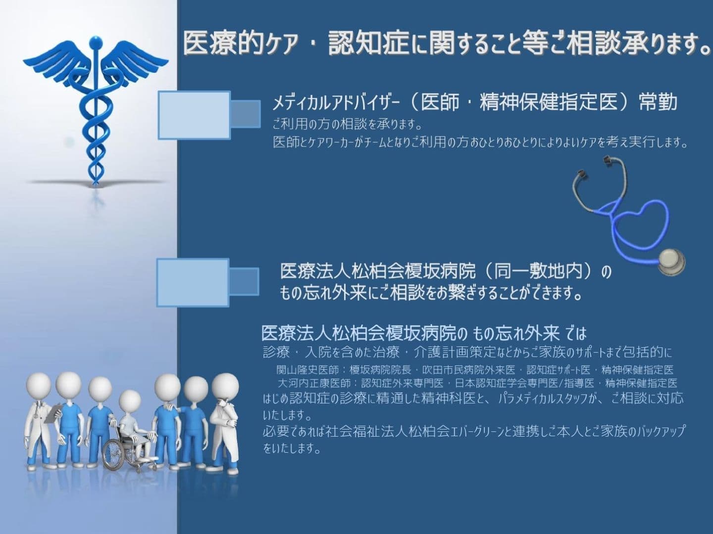 必要であれば社会福祉法人松柏会エバーグリーンと連携しご本人とご家族のバックアップをいたします。